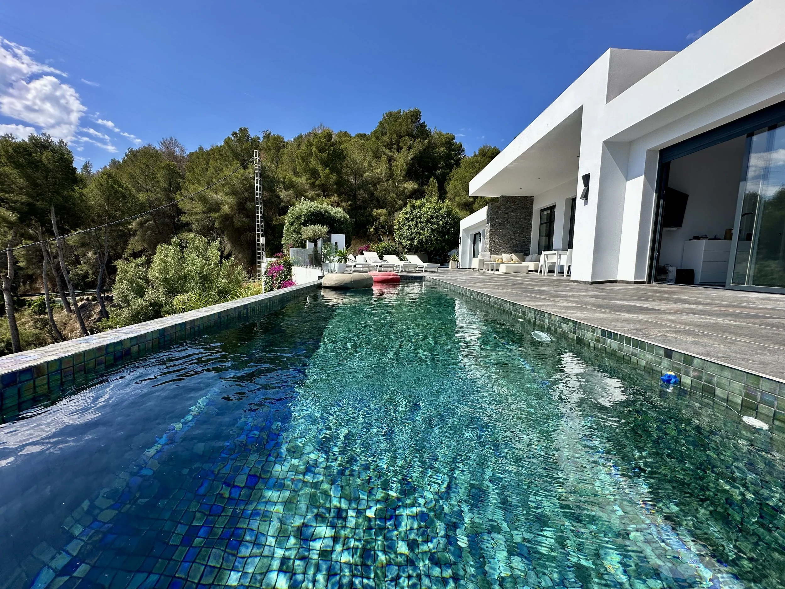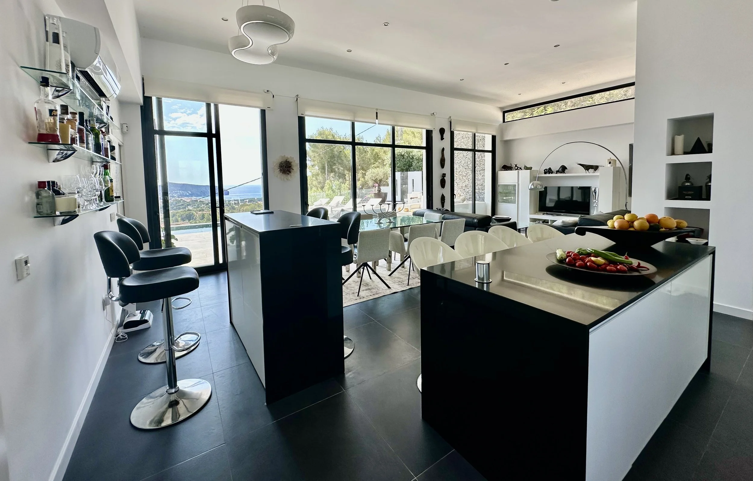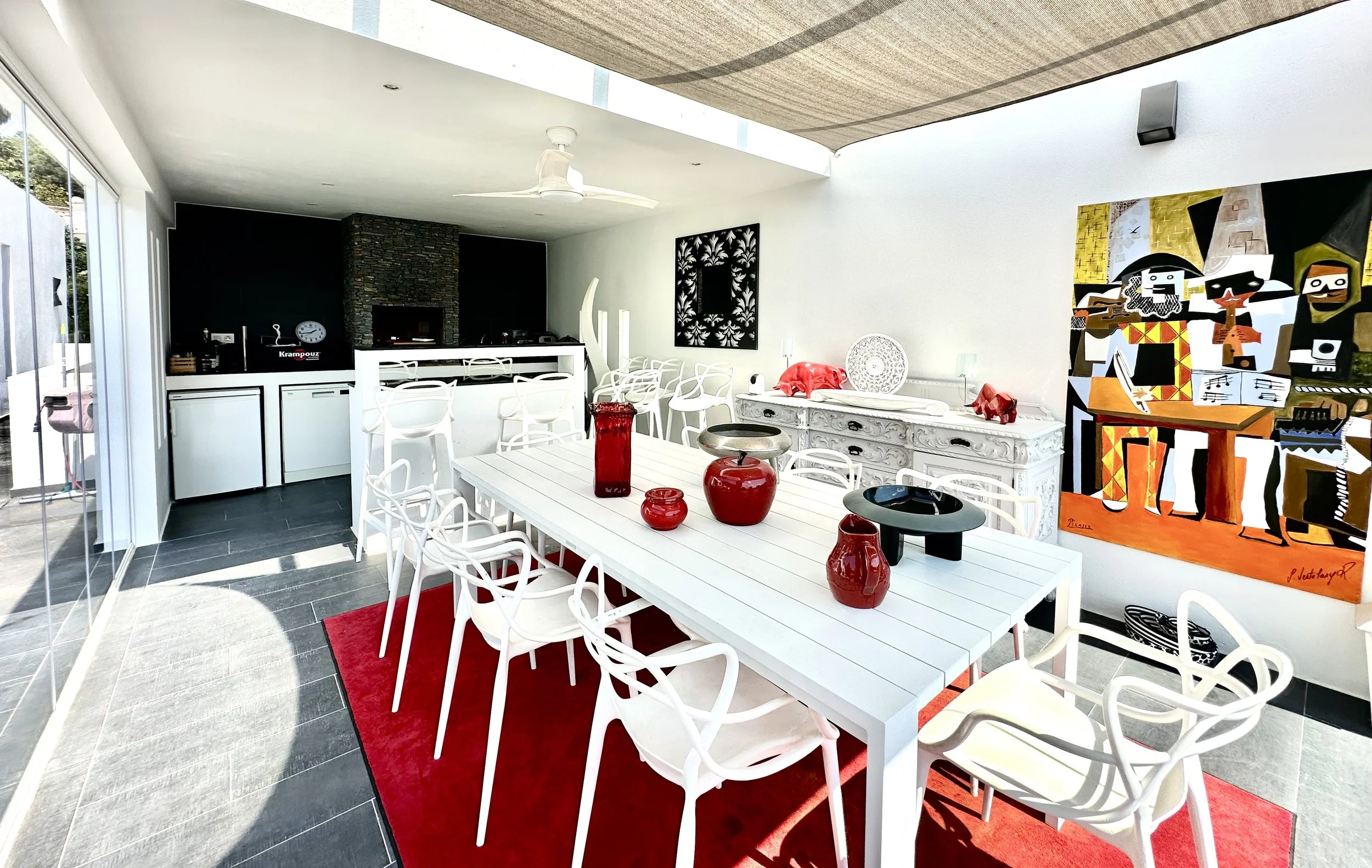 Idéalement dessinée sur un seul niveau, grande fluidité entre les espaces de piscine, terrasse, cuisine d'été et l'intérieur de la villa.