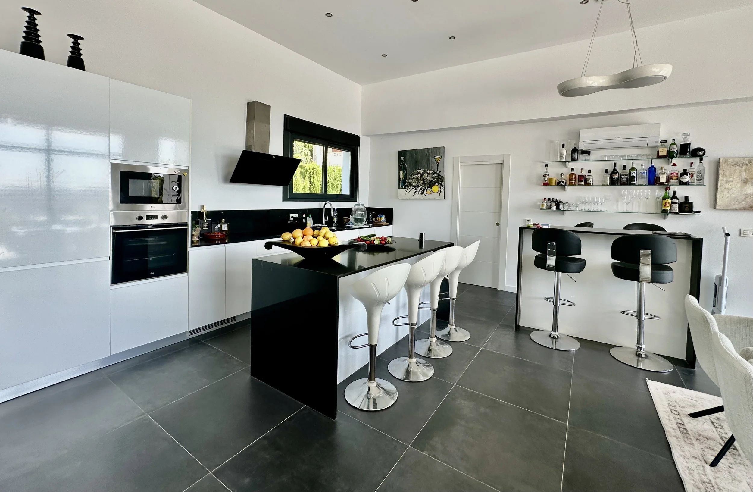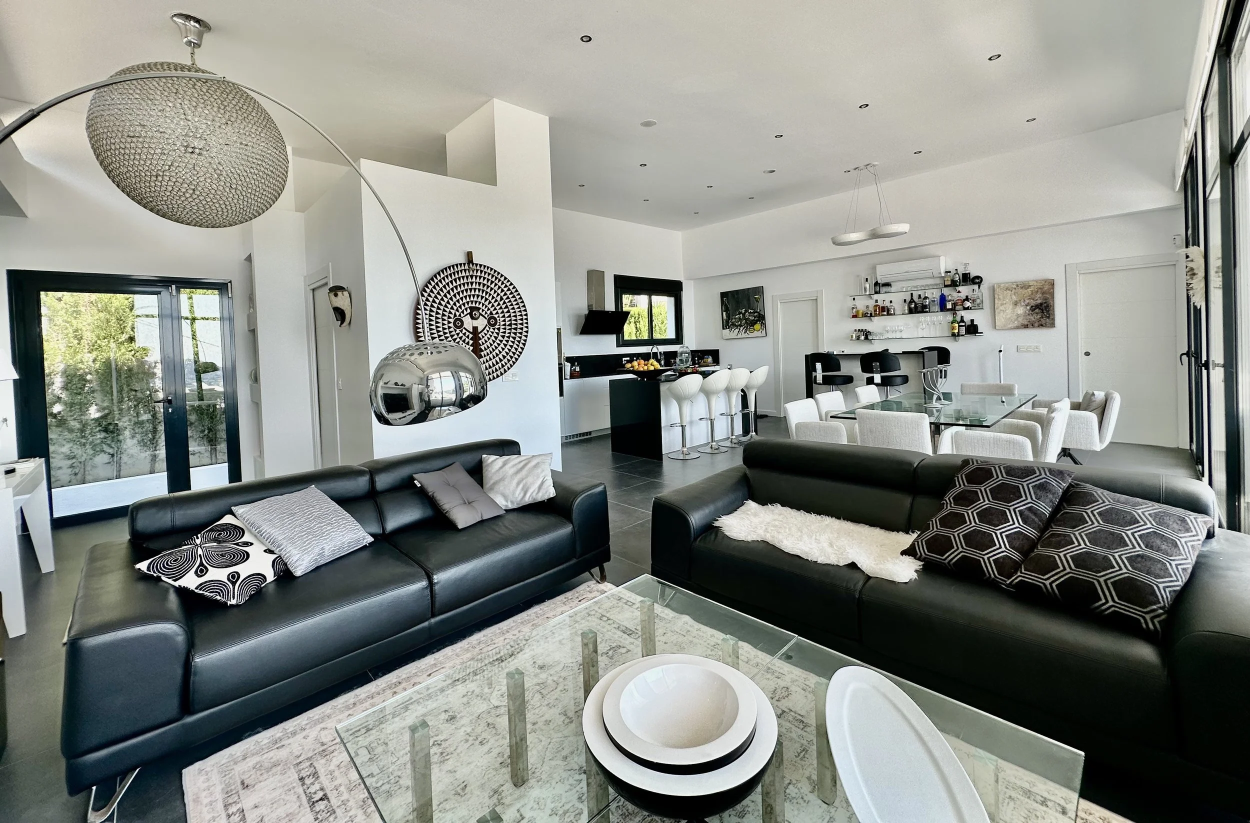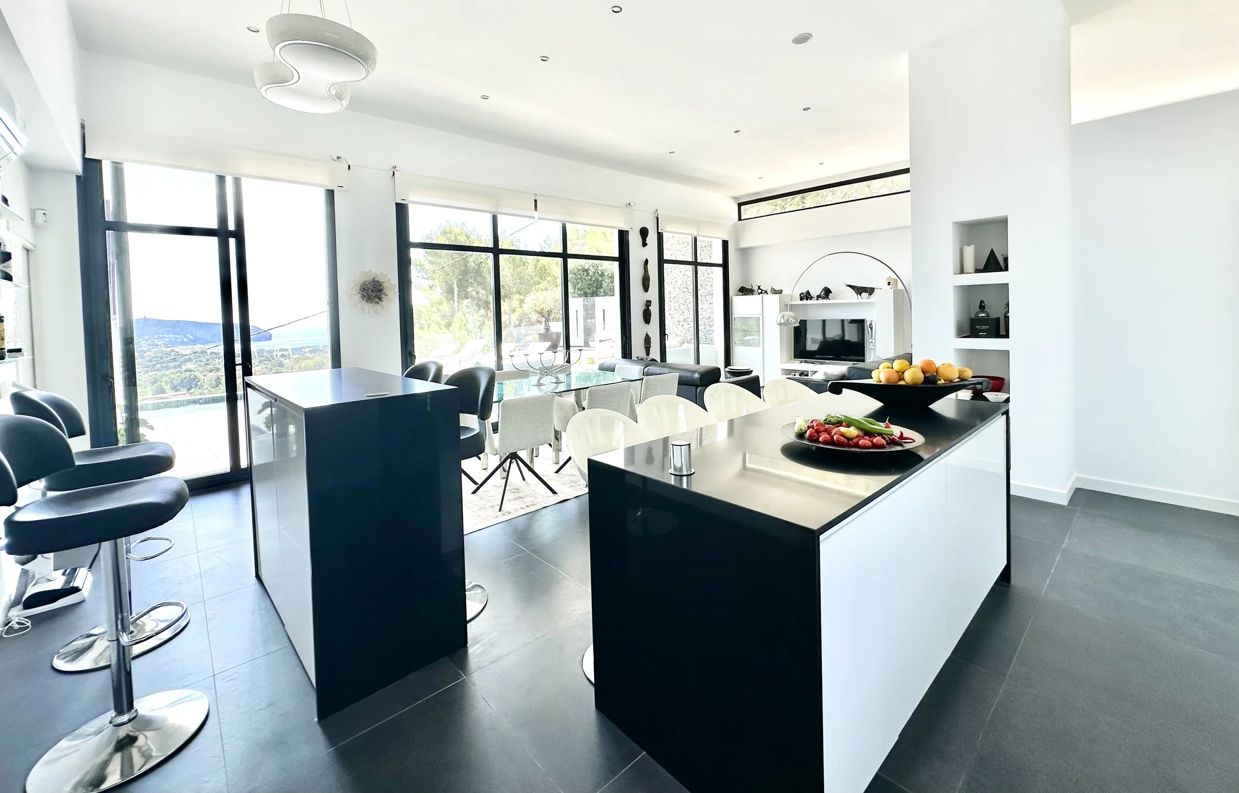 Idéalement dessinée sur un seul niveau, grande fluidité entre les espaces de piscine, terrasse, cuisine d'été et l'intérieur de la villa.