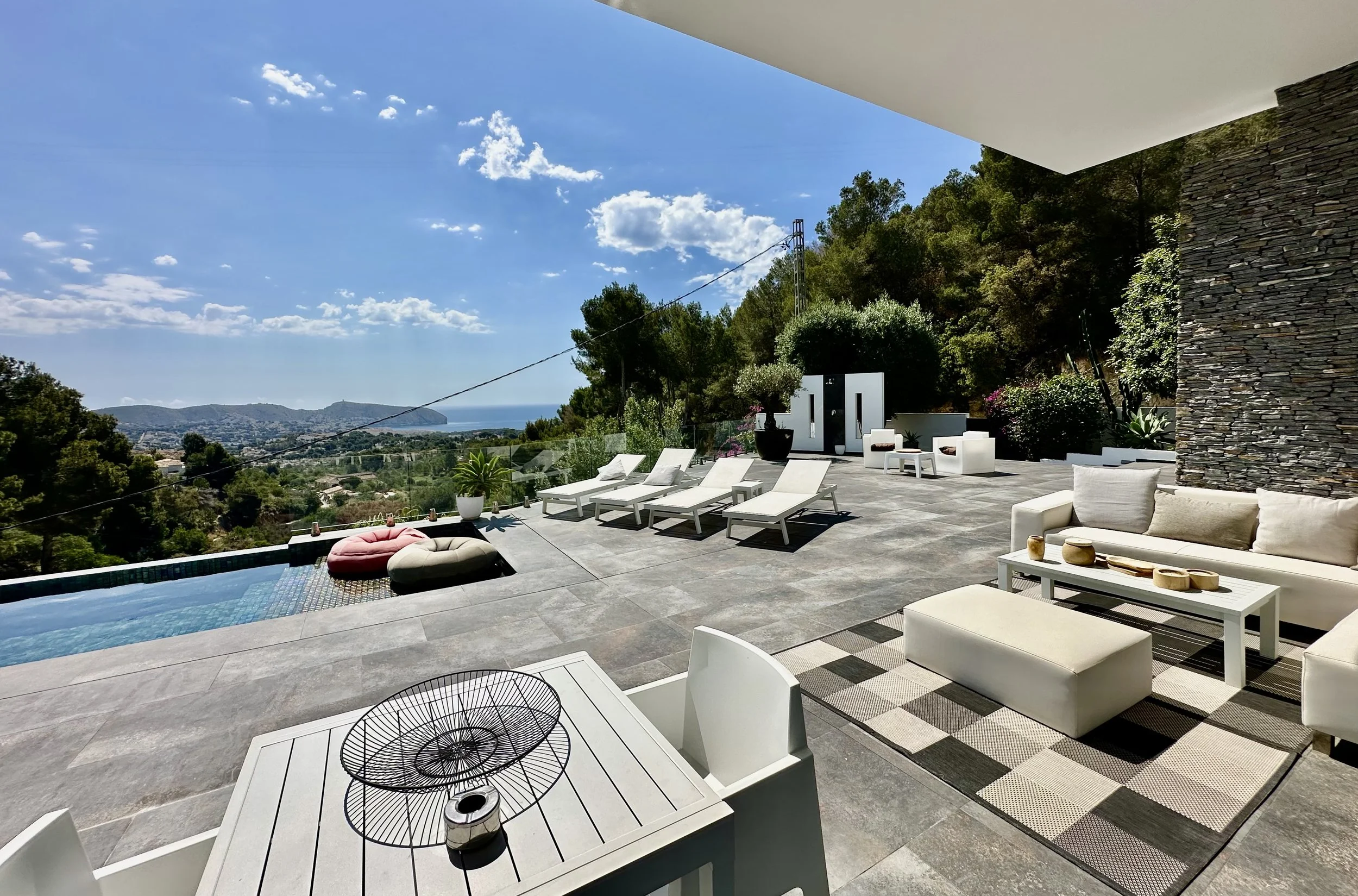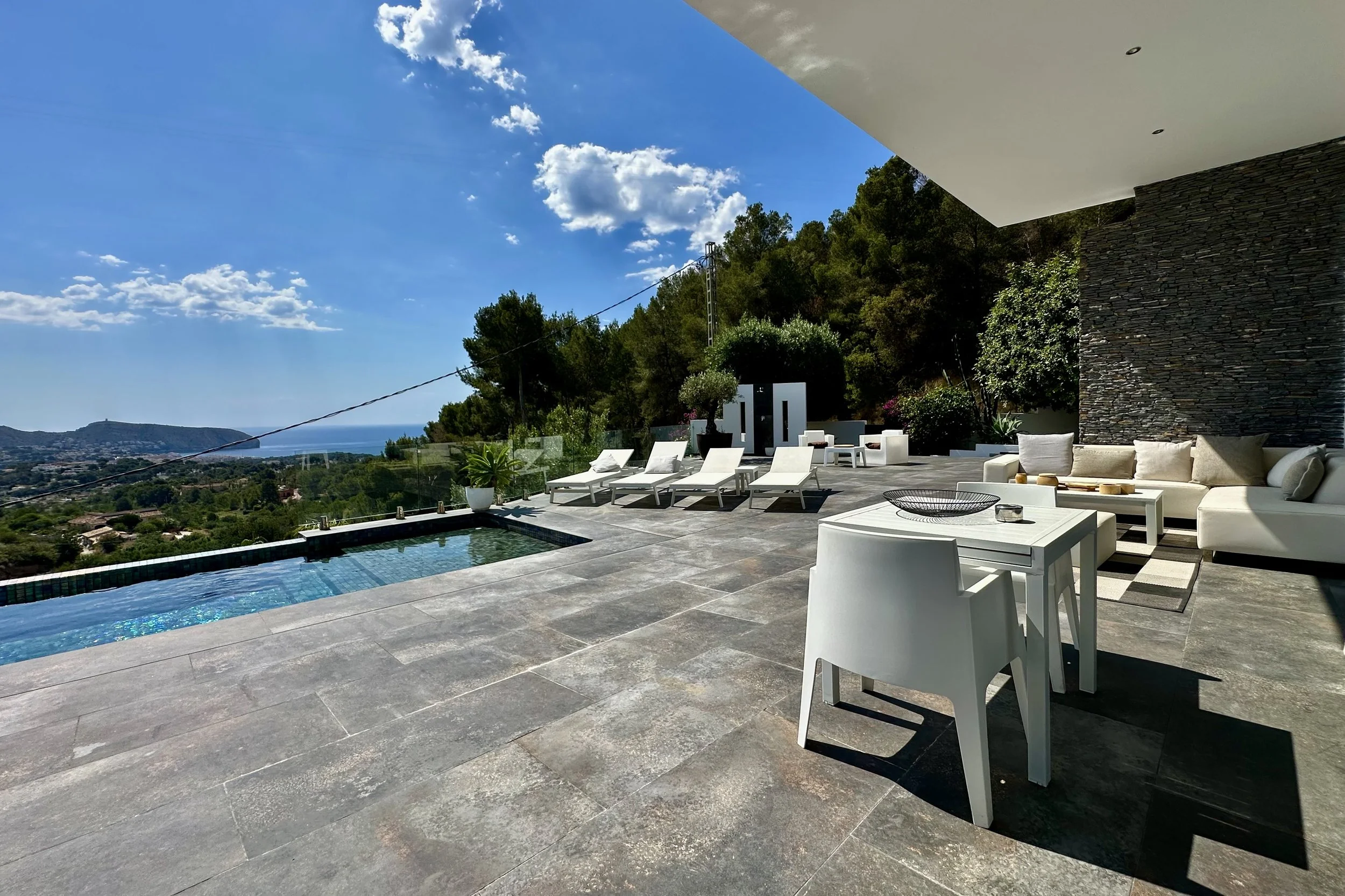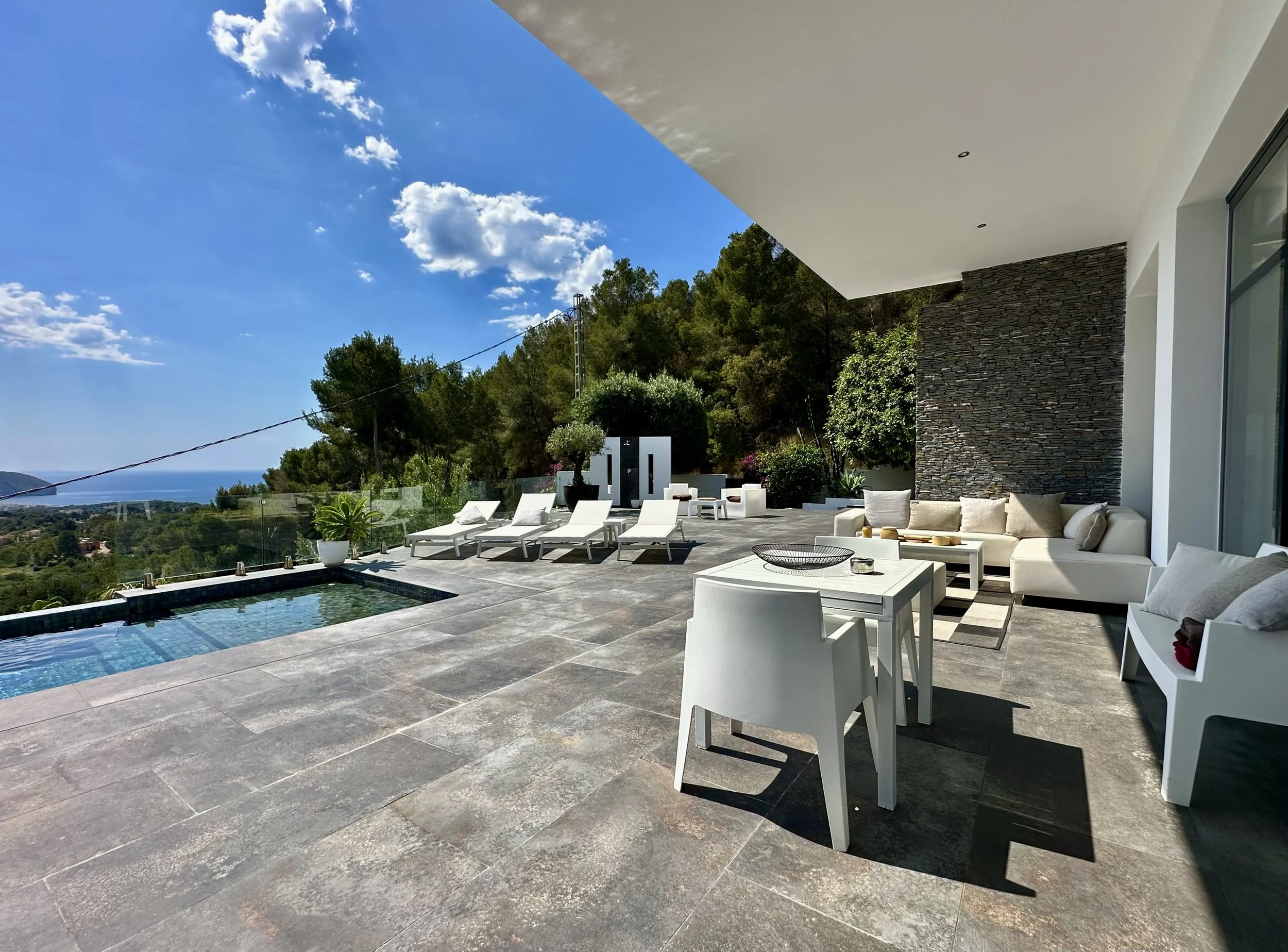 Une vue spectaculaire sur la mer et la vallée et un environnement particulièrement calme et verdoyant donnent un cachet unique à cette superbe propriété, construite en 2018.