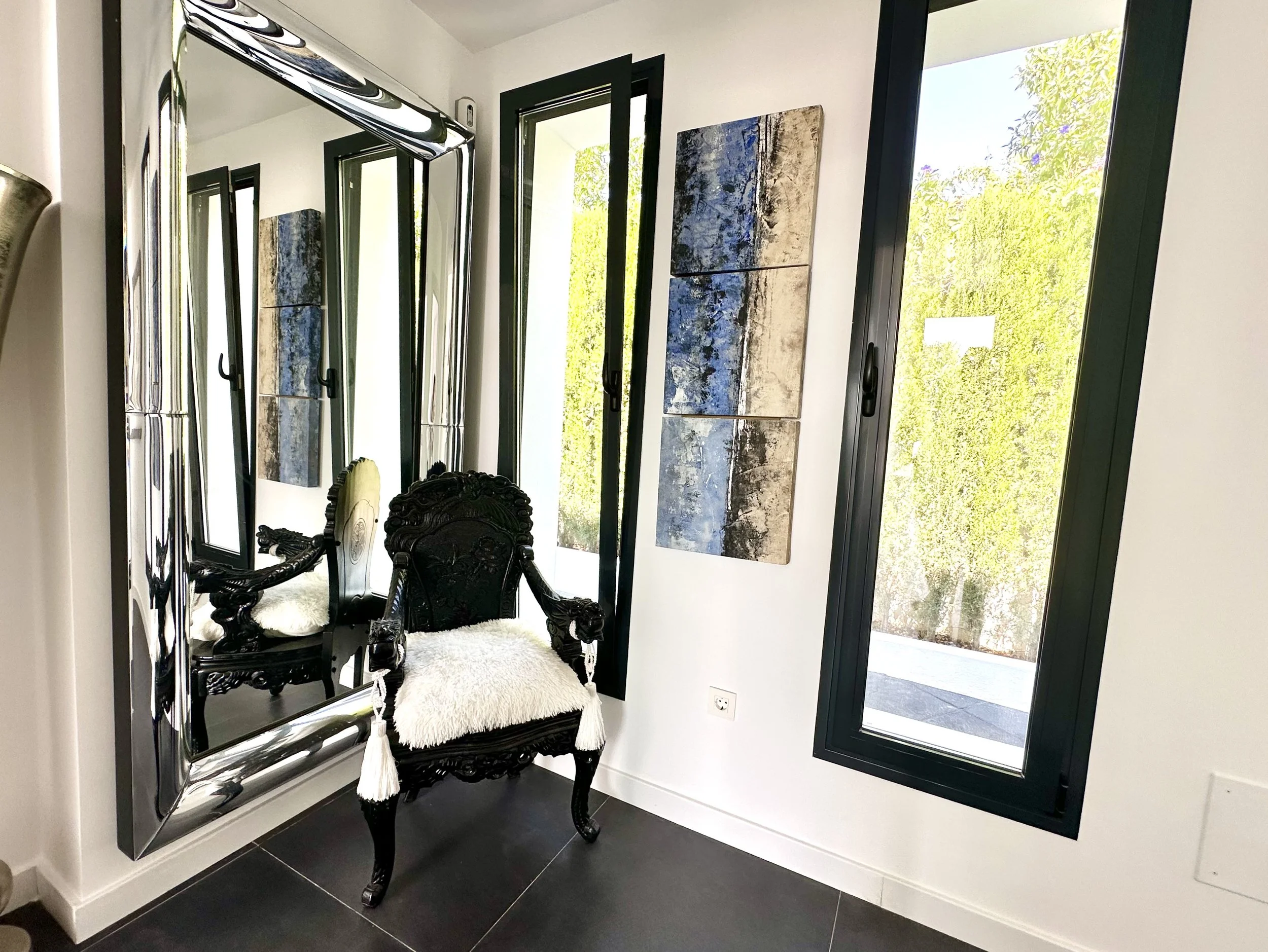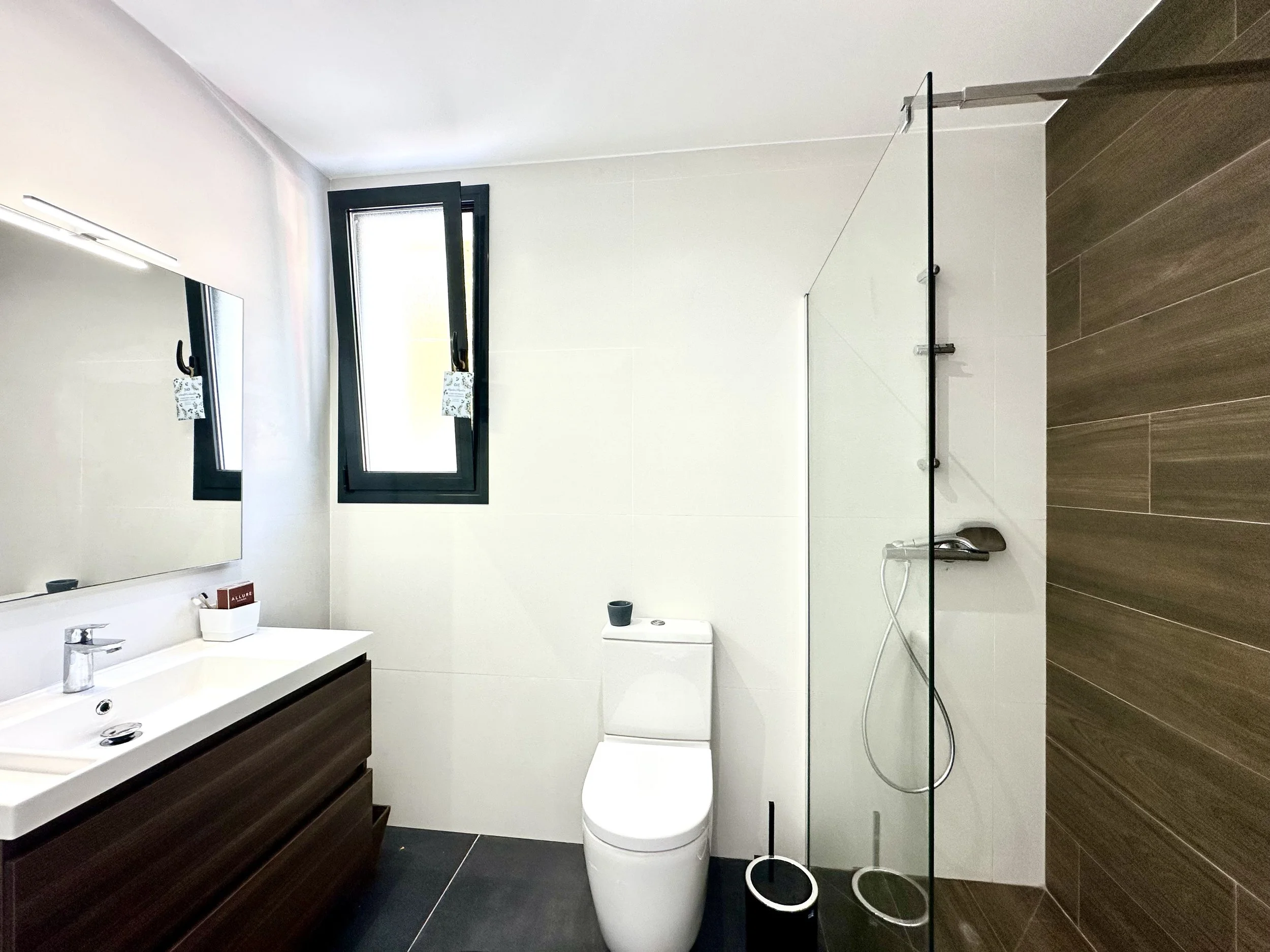 La villa est équipée du chauffage au sol, de la climatisation, de volets et dispose d'un garage pour entreposer des vélos et des motos, il est trop étroit pour une voiture mais c'est un espace généreux de stockage